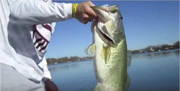 This lake yields bass after bass to Ryan’s casting! Ryan and his Texas A&M buddy land 14 large bass between them in the bay. Then they move into a channel to hook some more. It seems like there are no small bass in this bay! You need to watch the video to see for yourself.