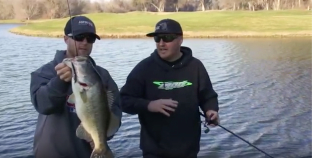 Mark’s friend Daniel does great with jerk bait and a red spinner. He pulls in some really big bass while Mark is talking.